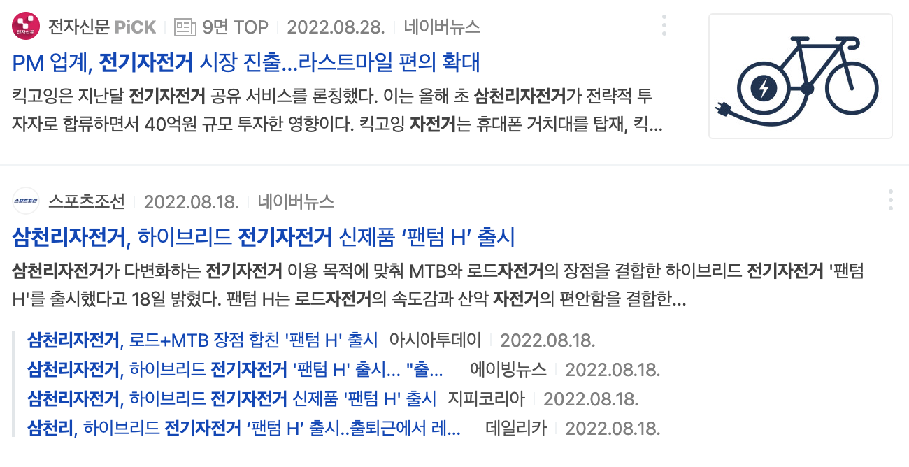 2. 자전거 관련주, 전기자전거 관련주, 네이버 배달 시장 진출 관련주 및 수혜주