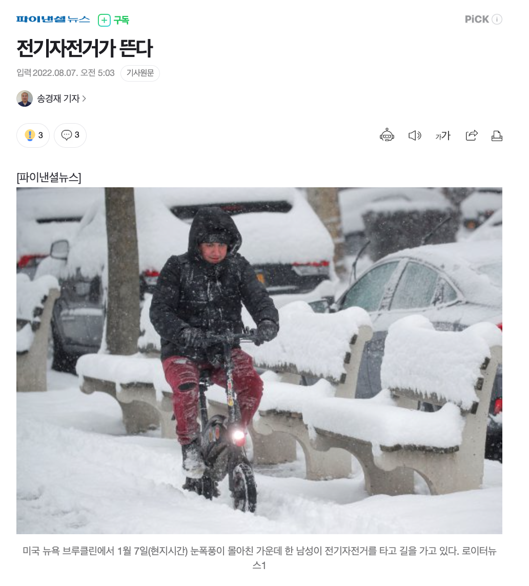 콜로라도주 덴버 외곽에 사는 30대 부부는 WSJ에 자신들이 몰던 자동차를 전기자전거 업체에 주고 대신 전기차를 보상판매 형식으로 구입했다면서 휘발유 값은 오르고, 테슬라 전기차는 주문 뒤 인도 받는데 지나치게 오래 걸려 전기자전거를 사게 됐다고 하는데 전기자전거는 인도가 자동차에 비해 빠르다는 장점을 갖고 있습니다.