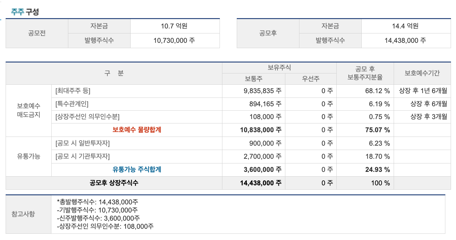미래반도체 공모주 유통가능 주식물량은 상장 당일 전체물량의 24.93%이며 타 종목 대비 상장대비 유통가능 주식수와 비슷해 주가흐름 변동성이 타 공모주들과 유사할것으로 예측됩니다.
