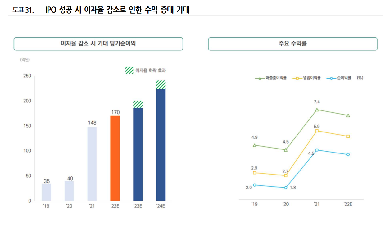 체크포인트: 1) 매출채권 및 재고 관리 경쟁력 보유해 경쟁사 대비 높은 영업이익률 기록, 2) 상장 자금을 활용한 해외 사업 확대 및 실적 제고 가능성 보유