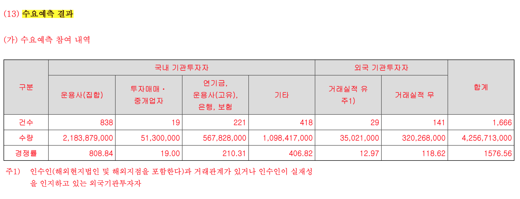 수요예측 경쟁률 / 매우좋음