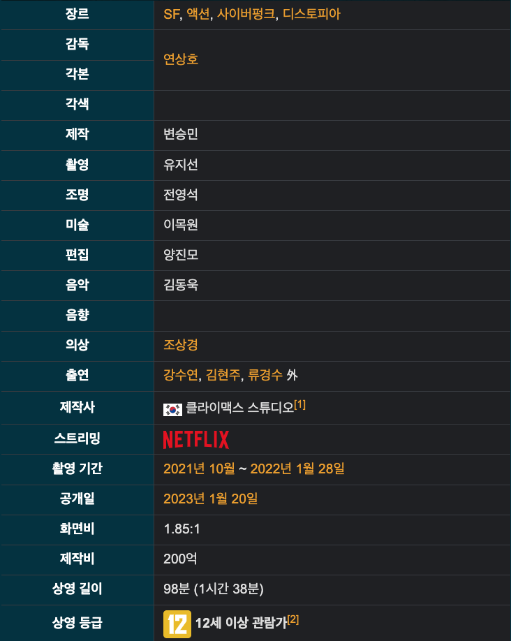 영화 ‘부산행’으로 글로벌 팬덤을 구축한 연상호 감독의 SF 장르물로 공개 전부터 기대를 모았다. 연상호 감독은 지난 2021년 넷플릭스 시리즈 ‘지옥’으로도 공개 하루 만에 글로벌 1위에 오른 바 있다.