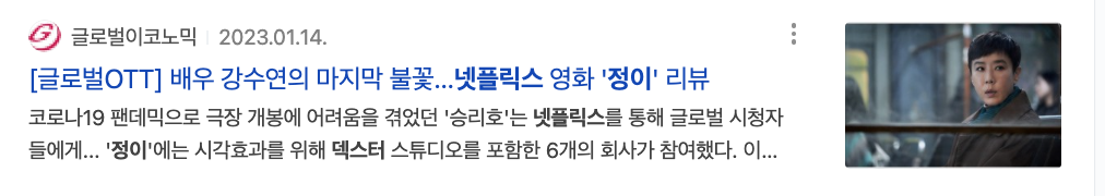 1. 정이 관련주 및 제작사(넷플릭스 01월 20일 공개 / 강수연, 김현주 주연) 에 관심이 가는 이유