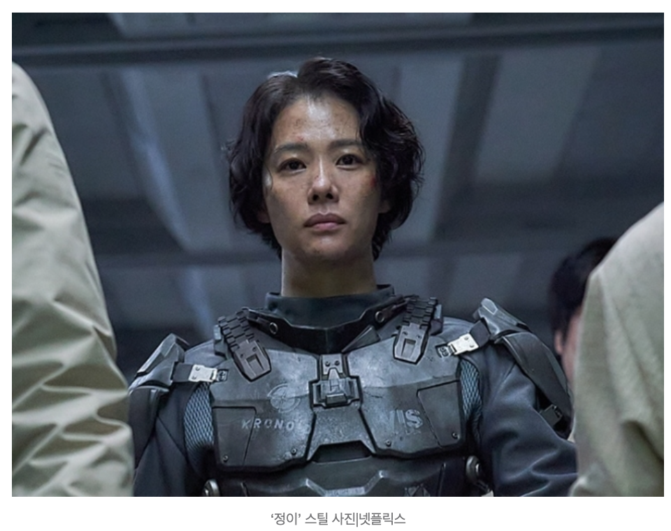 지난 20일 공개된 ‘정이’는 기후변화로 폐허가 된 지구를 벗어나 이주한 쉘터에서 발생한 전쟁을 끝내기 위해 전설적인 용병 정이의 뇌를 복제, 최고의 전투 A.I.를 개발하려는 사람들의 이야기를 그린 작품이다.