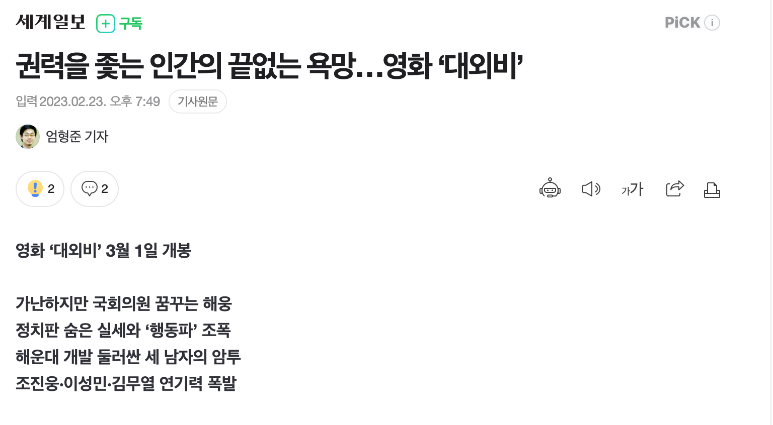 1. 영화 대외비 관련주 및 제작사(3월 1일 개봉)에 관심이 가는 이유