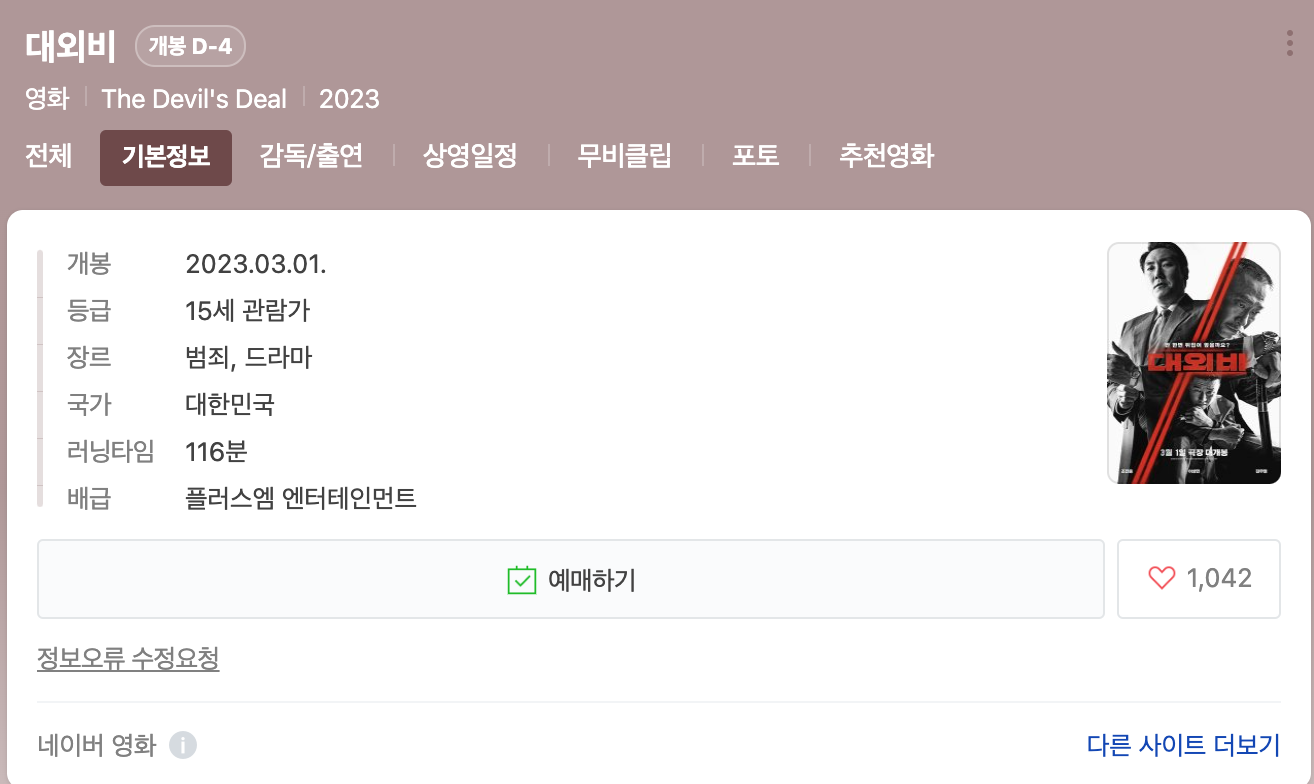 영화 대외비 공개일 : 2023년 03월 01일 (수요일)