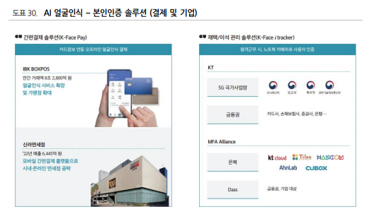국내 유일 공항 얼굴인식시스템 사업 역량을 통한 글로벌 레퍼런스 확대. 빌딩 및 대중교통 중심의 스마트 시티내 얼굴인식 적용 시장 확대. 금융 및 결제, 기업 등에 본인인증 솔루션 적용 확대 등으로 중장기적 본격적인 실적 성장 전망