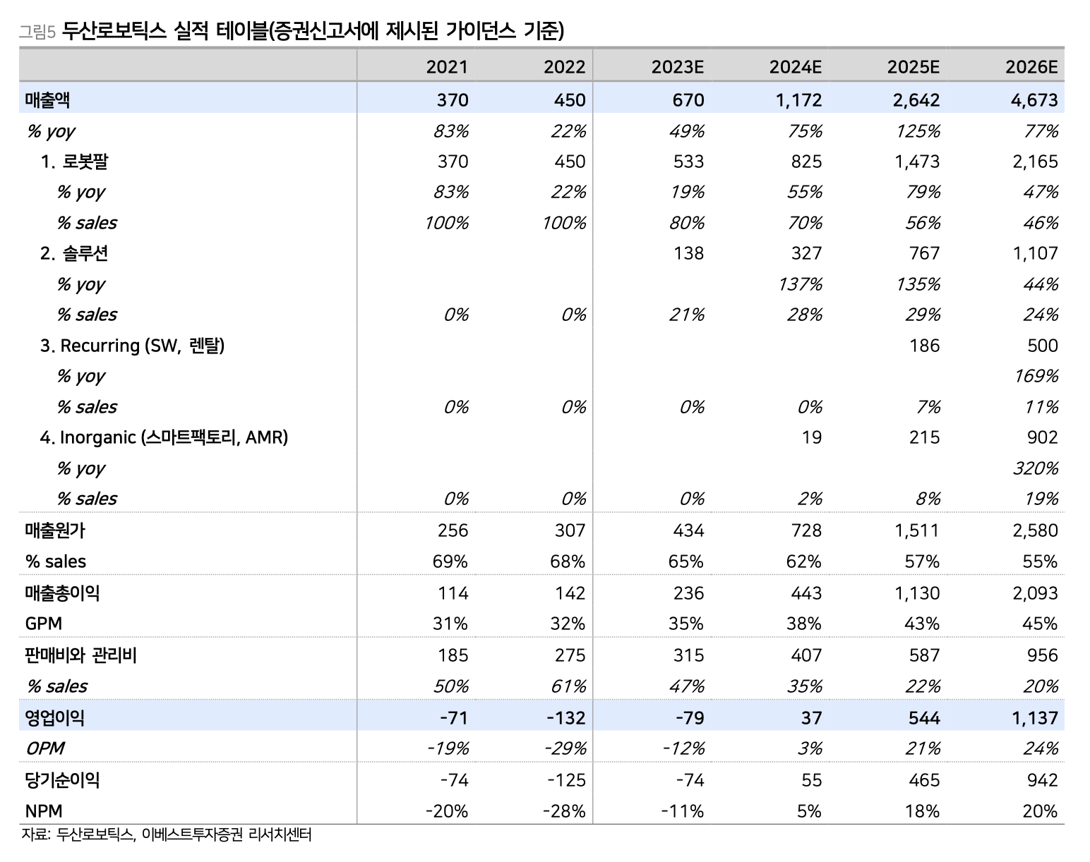 출처 : 두산로보틱스 , 이베스트 투자증권