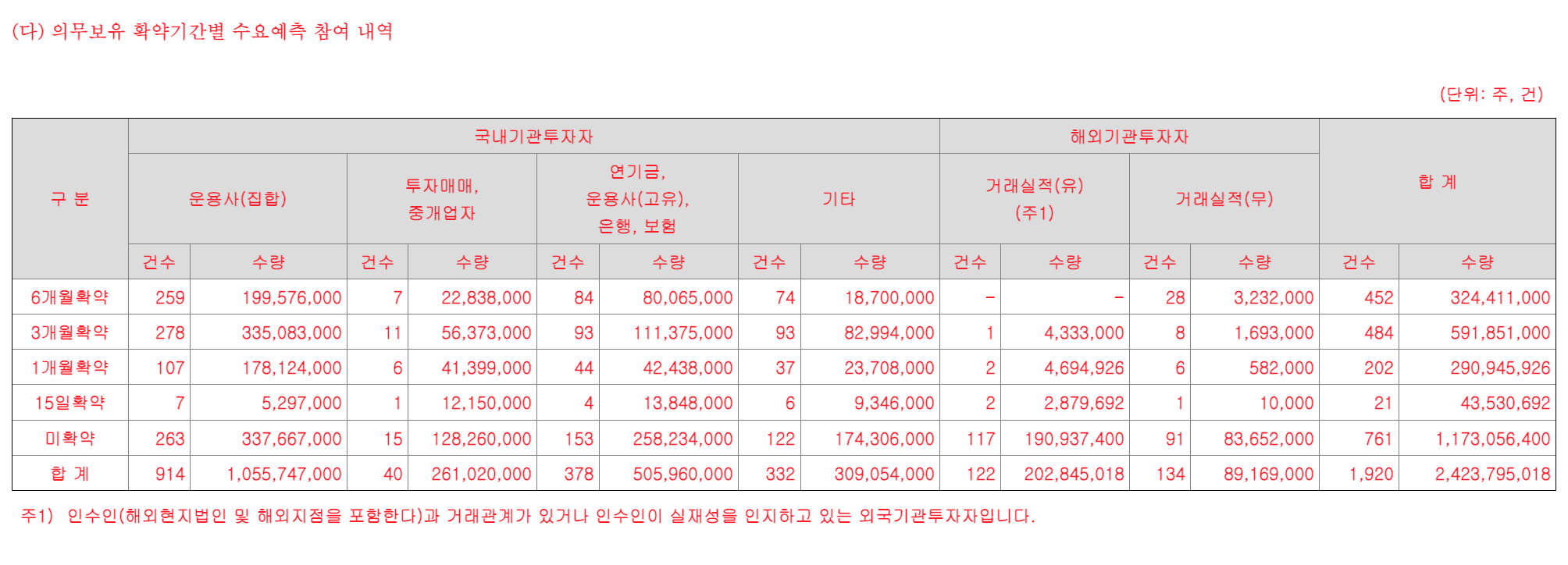 일반적으로 발행사와 상장 주관사는 새내기주의 증시 입성 후 주가 하락을 방지하기 위해 의무보유 기간을 길게 제시하는 기관투자가에 더 많은 공모 물량을 배정하는데 실제로 두산로보틱스 의무보유 기간을 상장일로부터 6개월로 제시한 기관이 전체 참여 기관의 23.5%나 달해 주가 상승에 기대감을 주고 있습니다.