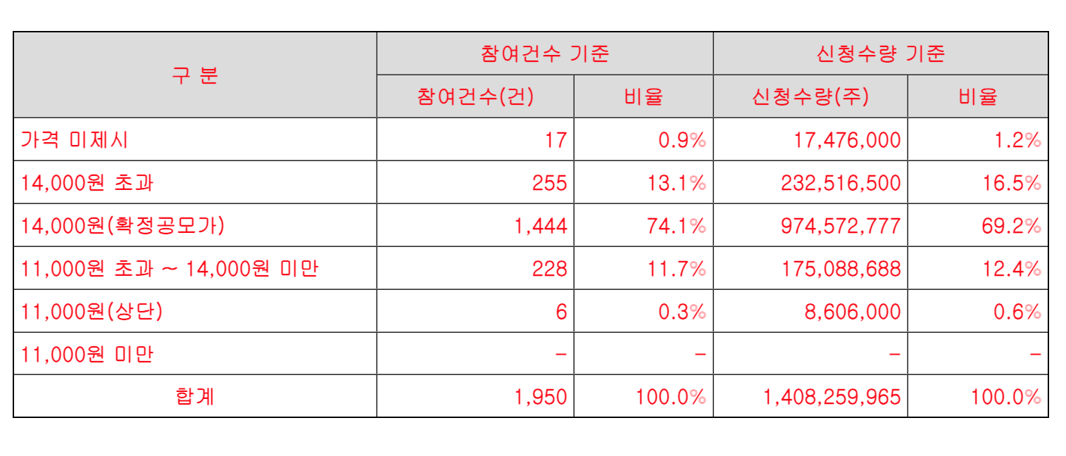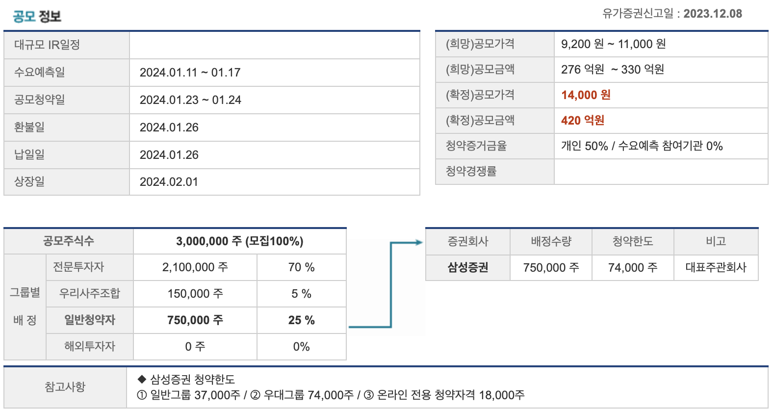 3. 이닉스 확정 공모가 : 14,000원 (* 이닉스 20주 최소청약증거금 140,000원)