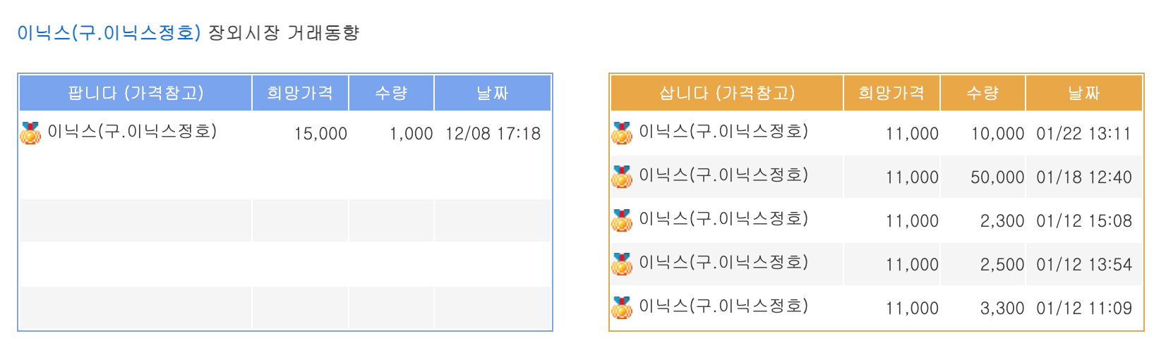 이닉스 장외시장 거래동향을 살펴보면 이닉스 매도 장외가는 15,000원에 형성되어 있고 매수 장외가는 11,000원에 형성되어 있습니다.