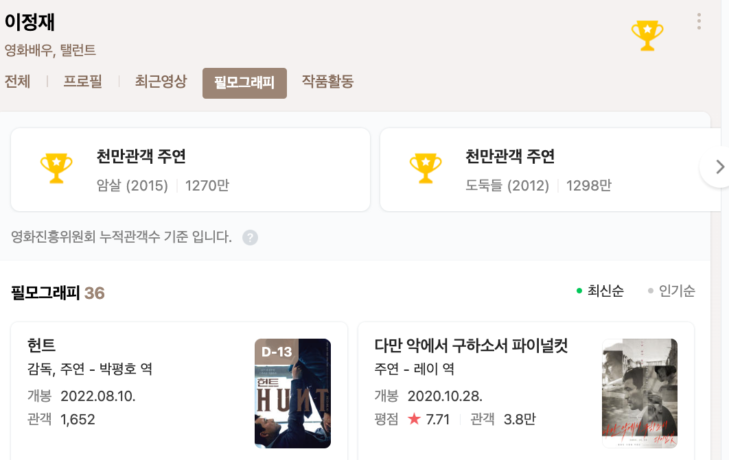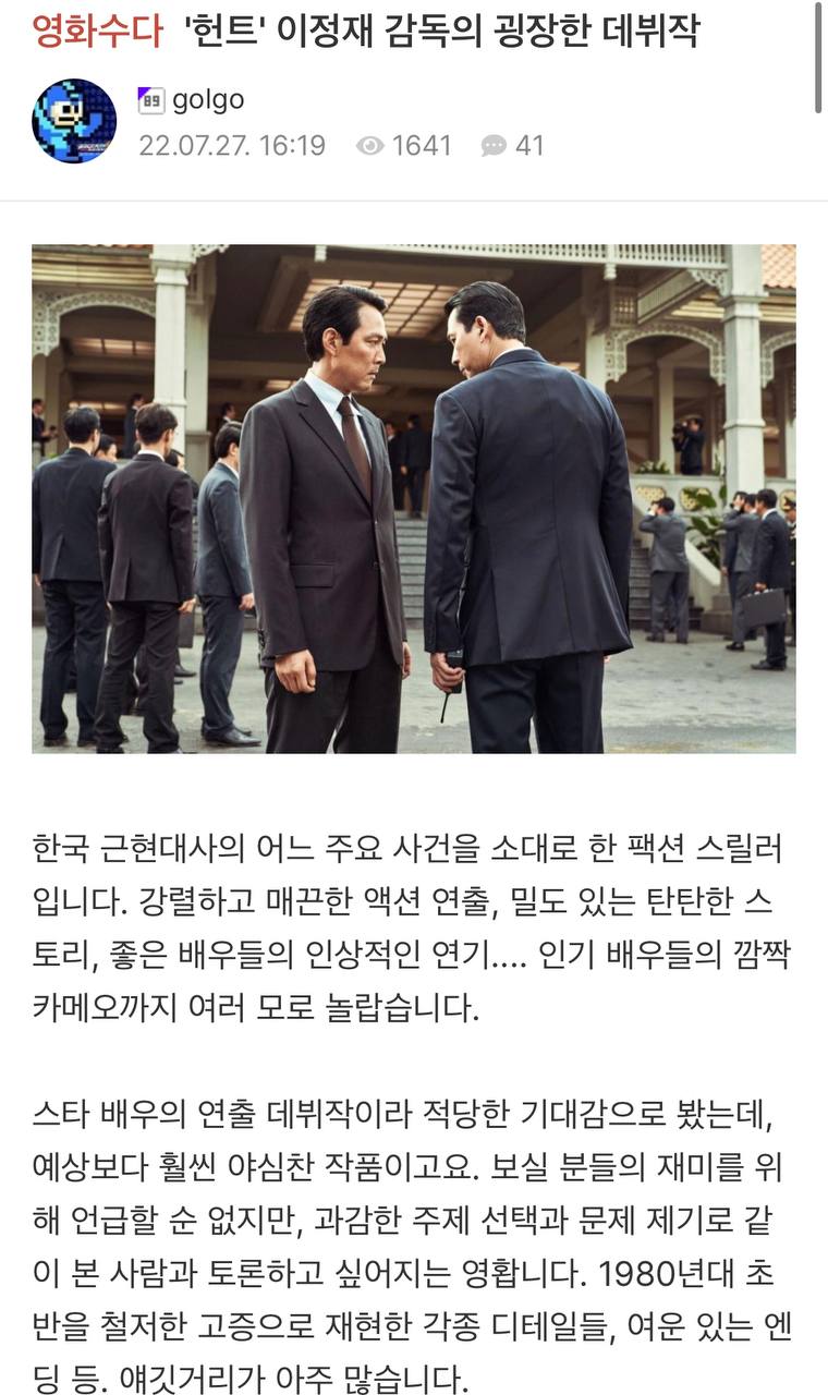 1) 영화 헌트 감독 : 이정재